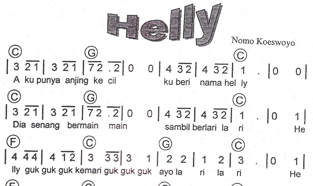 Not Angka Dan Chords Lagu Heli Ku Punya Anjing Kecil Inline