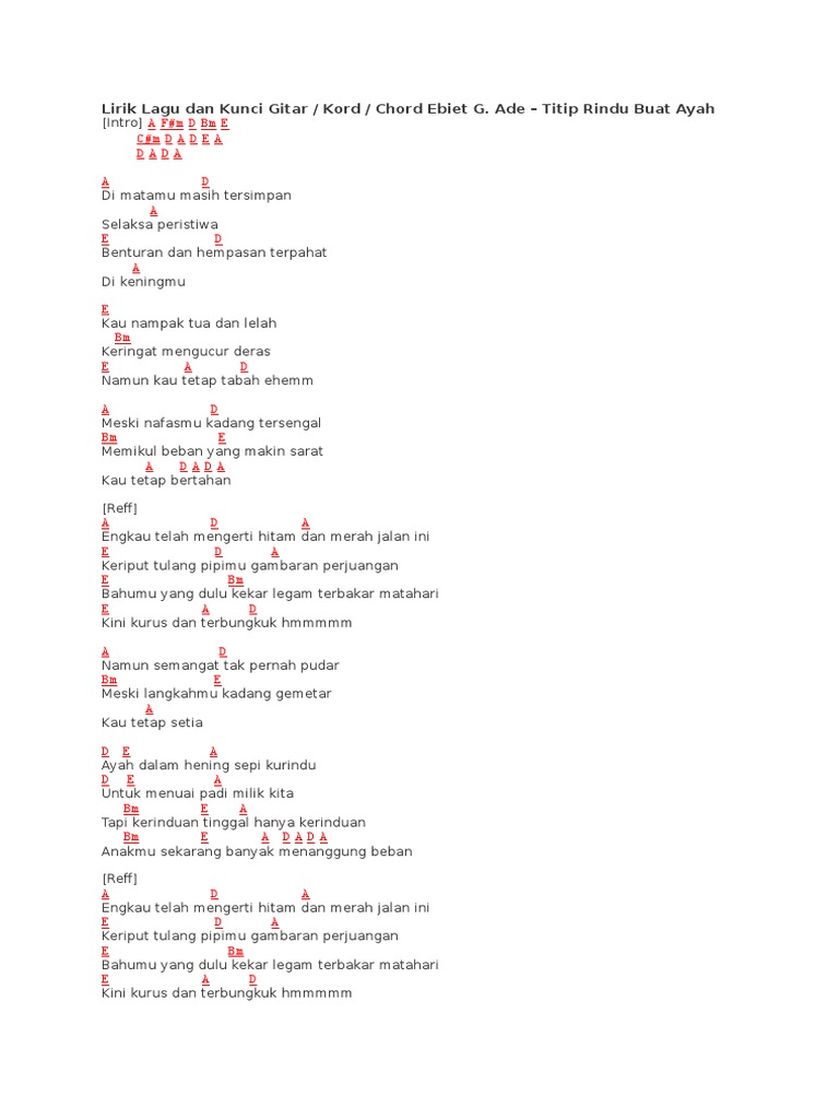 Check the best collection of Kunci gitar lagu ayah ebiet g ade dari c for desktop, laptop, tablet and mobile device. You can download them free. Http Sousobu Yolasite Com Resources Notasi Angka Lagu Ebiet G Ade Titip Rindu Buat Ayah Pdf
