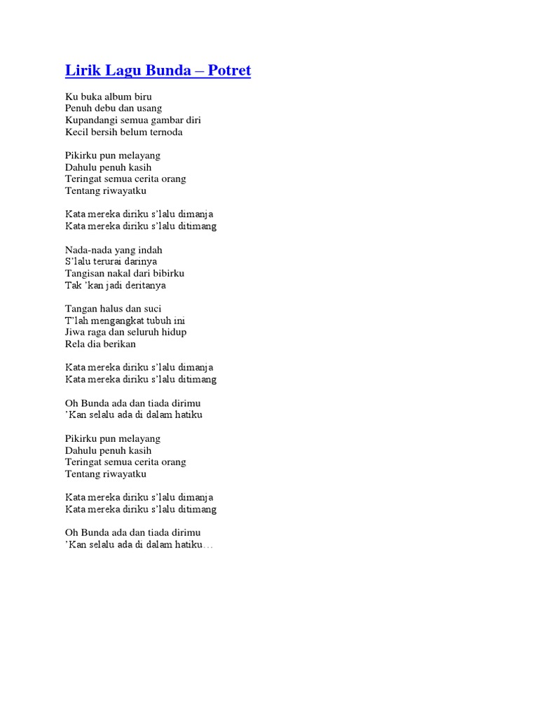Lirikdanlagu Info Lirik Lagu Tentang Bunda