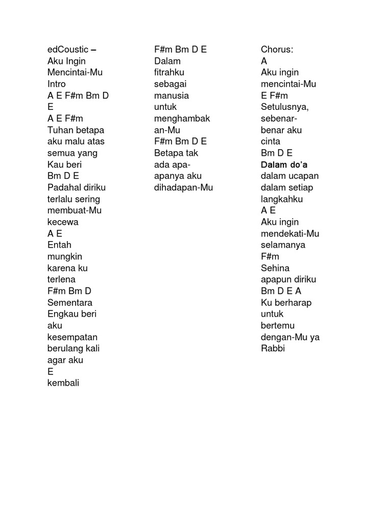 Check the best collection of Kunci gitar lagu cinta dalam doa for desktop, laptop, tablet and mobile device. You can download them free. Lirik Lagu Dan Chord Gitar Aku Begini Engkau Begitu