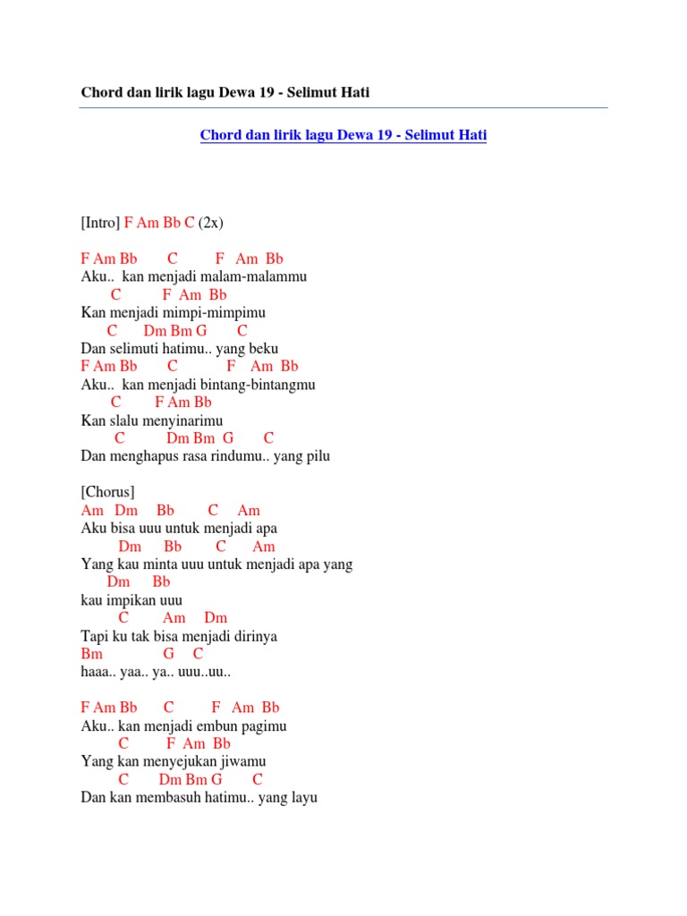 Check the best collection of Kunci gitar lagu dewa selimut hati for desktop, laptop, tablet and mobile device. You can download them free. Chord Lagu Dewa Kumpulan Ilmu Dan Pengetahuan Penting