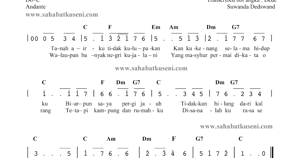 Lagu Tanah Airku Not Angka Lirik Dan Chord Sahabatku Seni