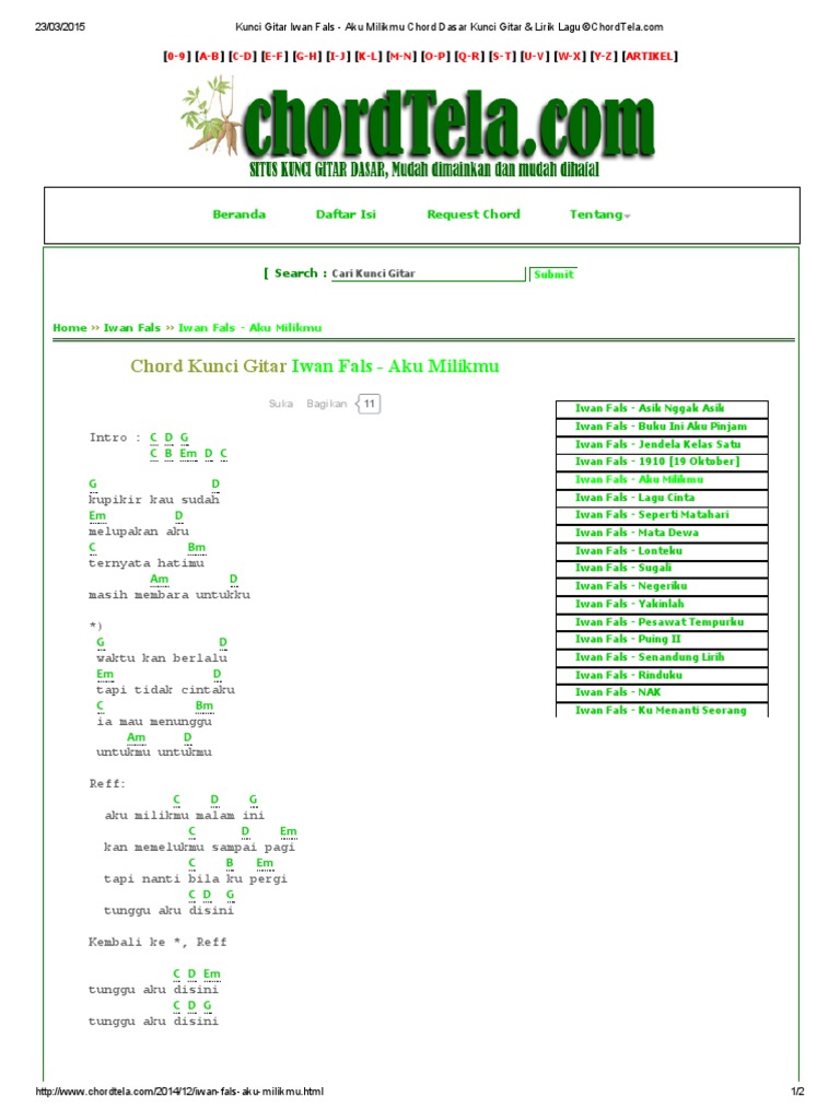 Check the best collection of Kunci gitar lagu iwan fals for desktop, laptop, tablet and mobile device. You can download them free. Kunci Gitar Iwan Fals Aku Milikmu Chord Dasar Kunci Gitar