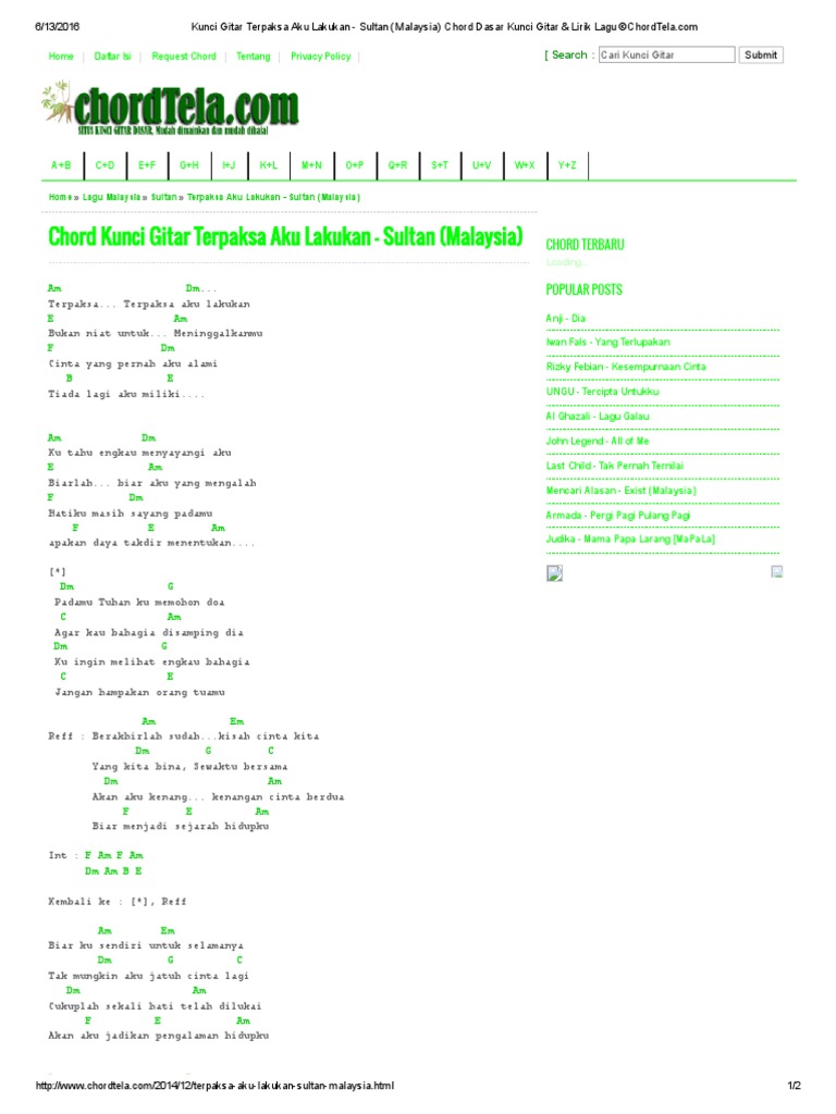 Check the best collection of Kunci gitar lagu lagu galau indonesia for desktop, laptop, tablet and mobile device. You can download them free. Kunci Gitar Terpaksa Aku Lakukan Sultan Malaysia Chord Dasar