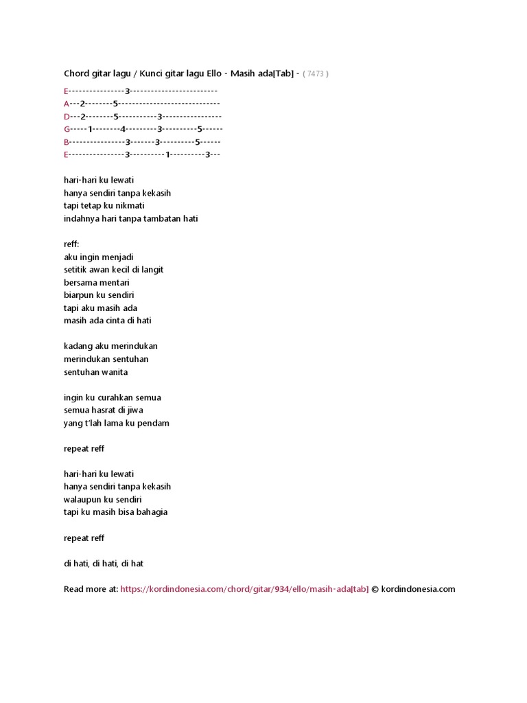 Check the best collection of Kunci gitar lagu lagu lama for desktop, laptop, tablet and mobile device. You can download them free. Chord Gitar Lagu Ello Masih Ada