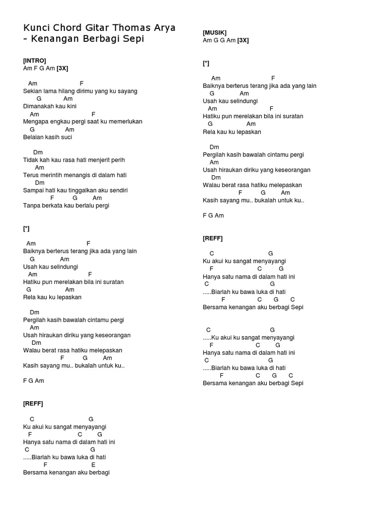 Chord Satu Hati Sampai Mati By Thomas Arya Chordlicious