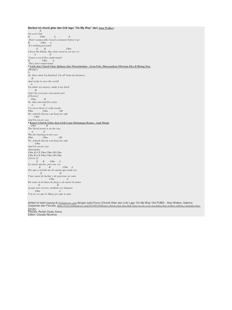 Check the best collection of Kunci gitar lagu on my way alan walker for desktop, laptop, tablet and mobile device. You can download them free. Berikut Ini Chord Gitar Dan Lirik Lagu Alan Walker Docx