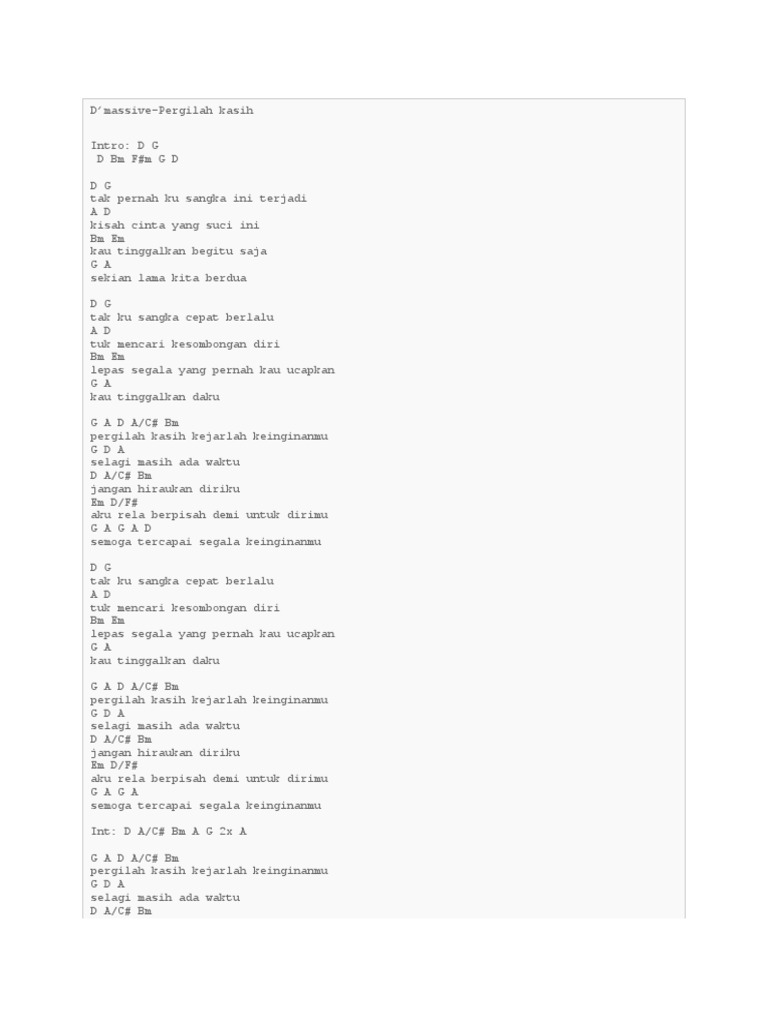 Chord Kunci Gitar Dan Lirik Pergilah Kasih D Masiv Pergilah Kasih