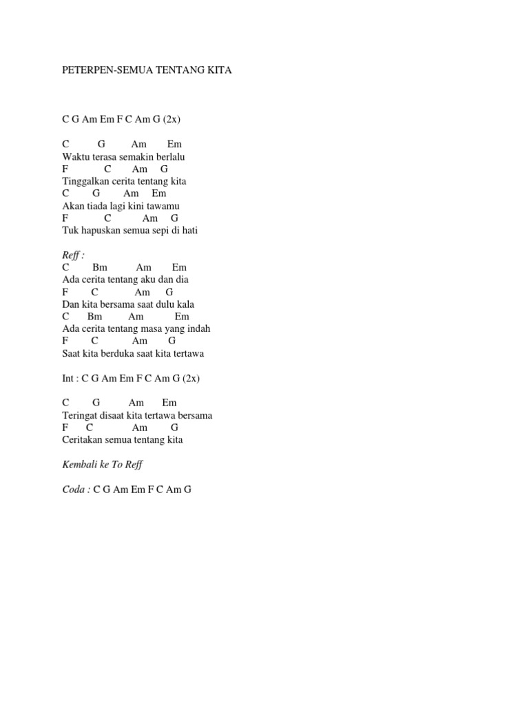 Check the best collection of Kunci gitar lagu peterpan semua tentang kita for desktop, laptop, tablet and mobile device. You can download them free. Lirik Lagu Peterpan Semua Tentang Kita